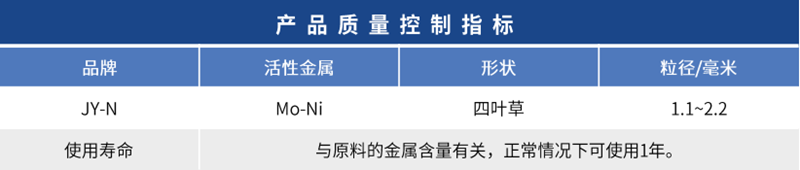JY-N催化劑具有芳香飽和、脫碳、脫硫、高脫氮和適度加氫裂化(轉(zhuǎn)化)的功能。